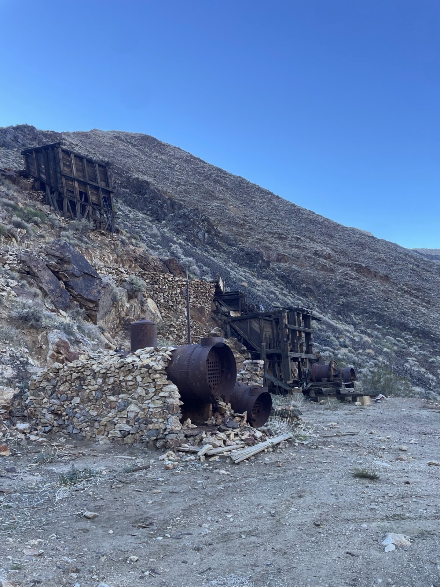 We woke early the next day and headed up beautiful Pleasant Canyon, stopping to check out various mining operations artifacts.