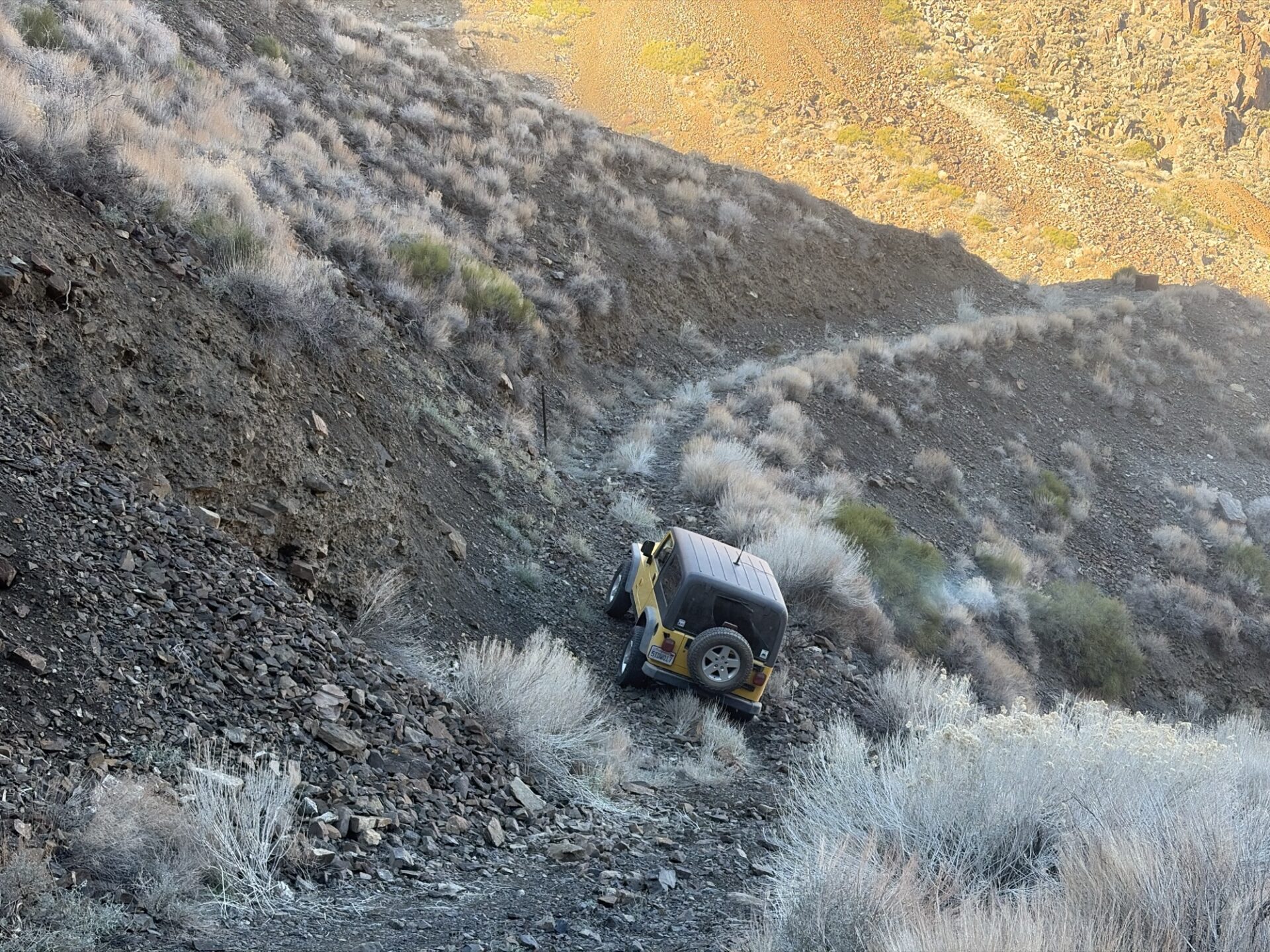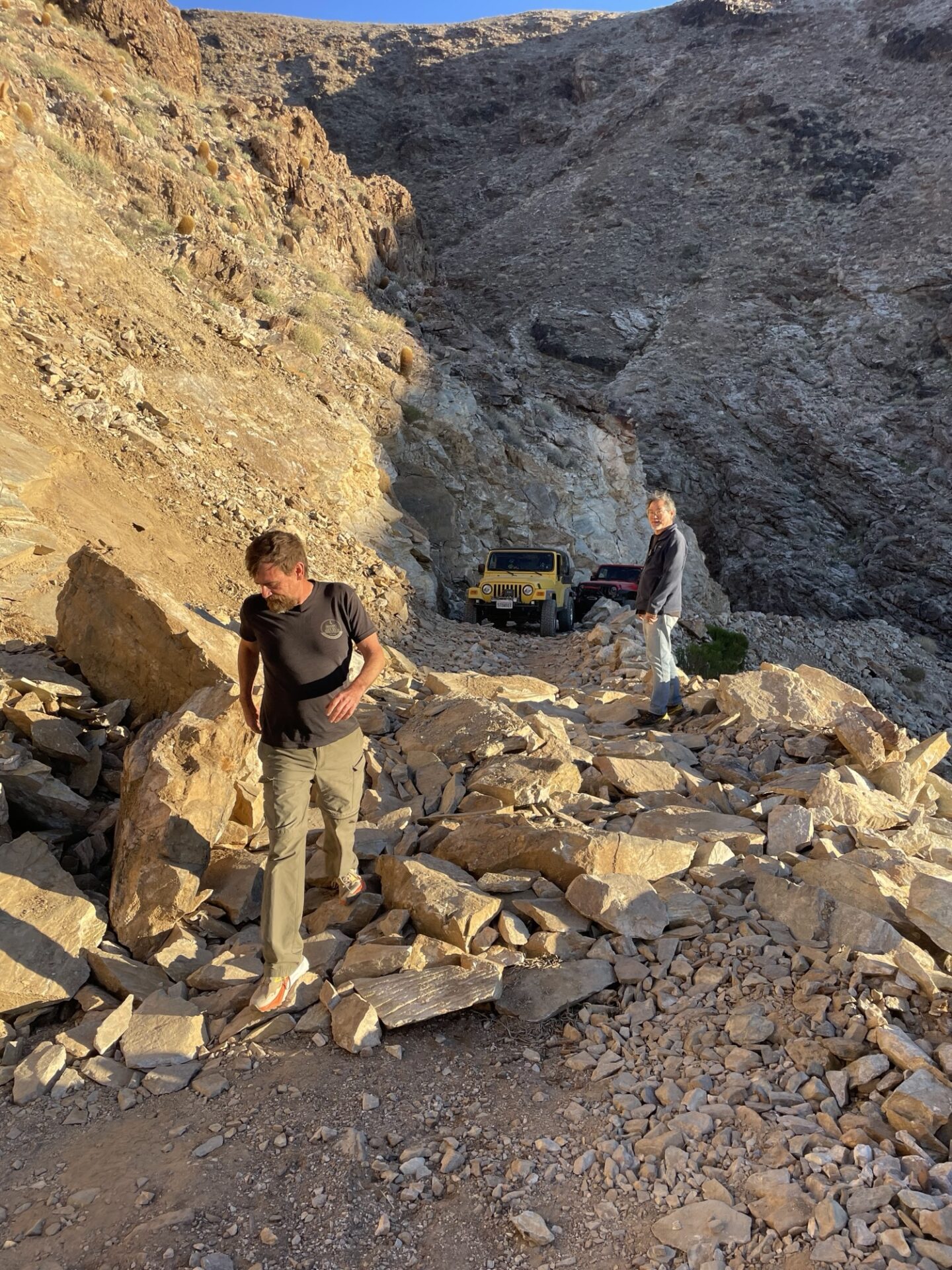 We made it to the landslide, which had been cleared enough to get through with some spotting. Which was a good thing as the sun was getting low and it had taken us all day to get there.