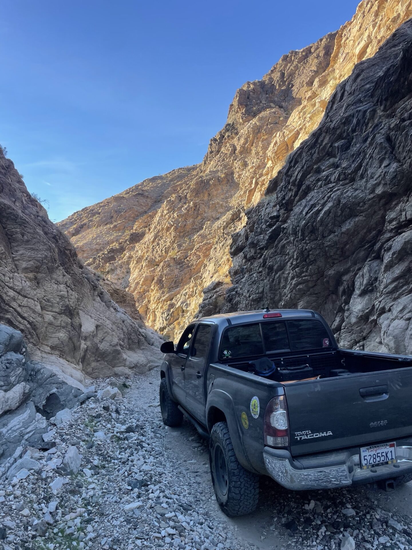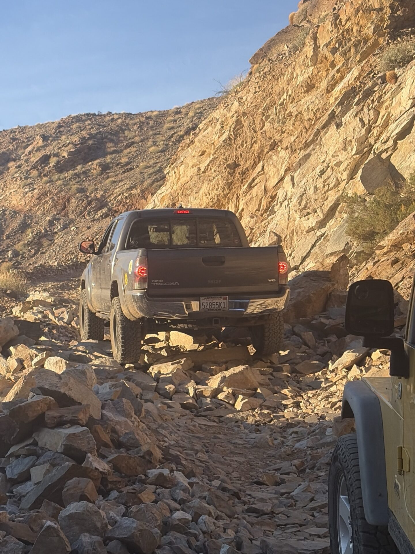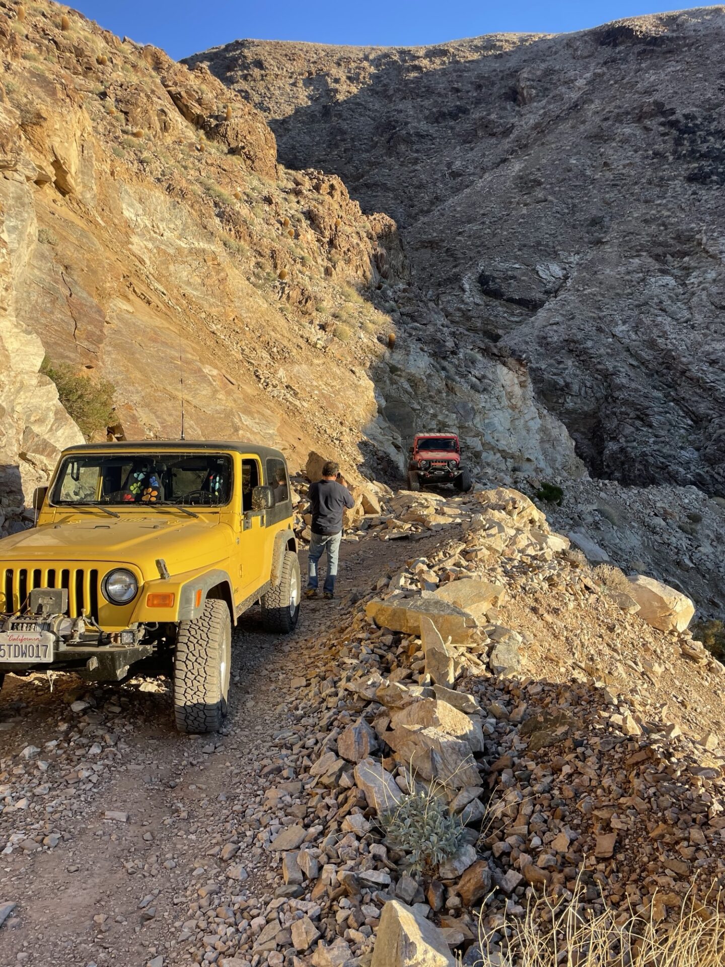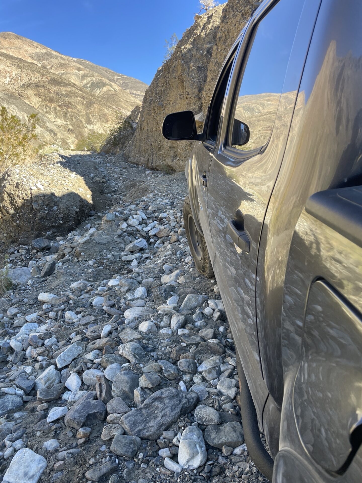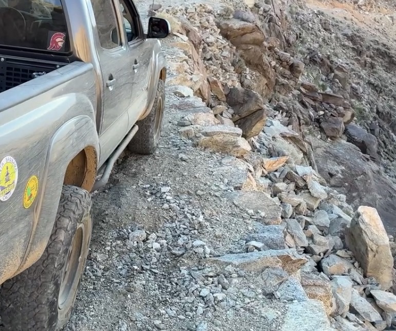 I did the Berdoo canyon loop, it’s nice, pretty short. I would say this is a nice addition if you are visiting Joshua tree. I had to loop past Palm Springs to get back to the park (you exit fully on the other side of the park), so I stopped there for a bit (you could also just turn around and go back through the canyon – it seemed like folks were doing that and looping through Geology Tour Road). At the end, there were maybe 15 cars and groups of people parked off the road and shooting at the canyon – I was expecting some sort of organized range but yeah very disorganized. A ranger did go by at the same time and seemed fine with everything. On Berdoo canyon, there were maybe 3 obstacles. I met a couple in an old 4 runner and we went together. I had no problem with anything in the jeep, but they picked a tire off the ground on one of the obstacles.