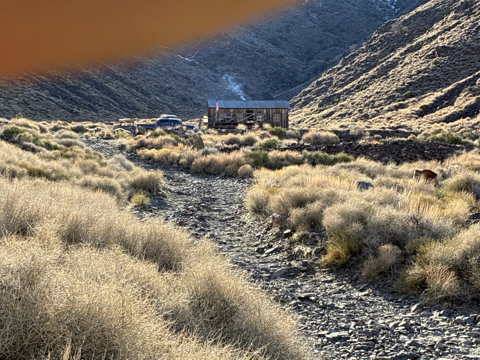 We set up camp with some daylight to spare and decided to check the condition of Surprise Canyon and Chris Wicht Camp, the trailhead to Panamint City, which we had not seen for a couple years. We discovered the road was blown out and impassable (at least for our vehicles) prior to Chris Wicht Camp.