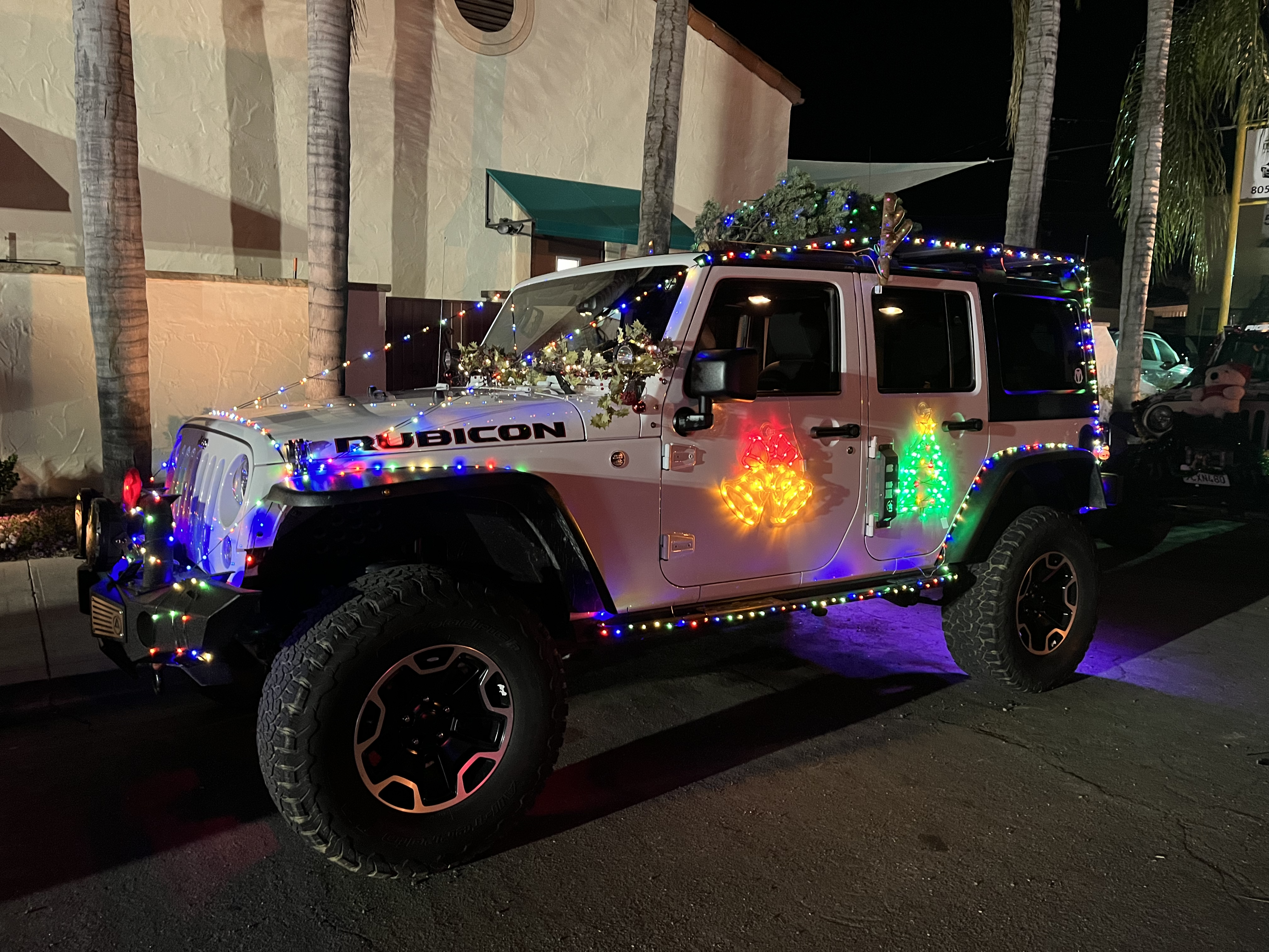 Our club members decorated their rigs with lights, garland, and Christmas-themed inflatables, creating a dazzling display of four-wheel drive vehicles. Some of the highlights were a Jeep Wrangler with a giant snowman on the roof, a Toyota Land Cruiser with a reindeer antler and a red nose, and a Ford Bronco with a sleigh full of presents in the back.