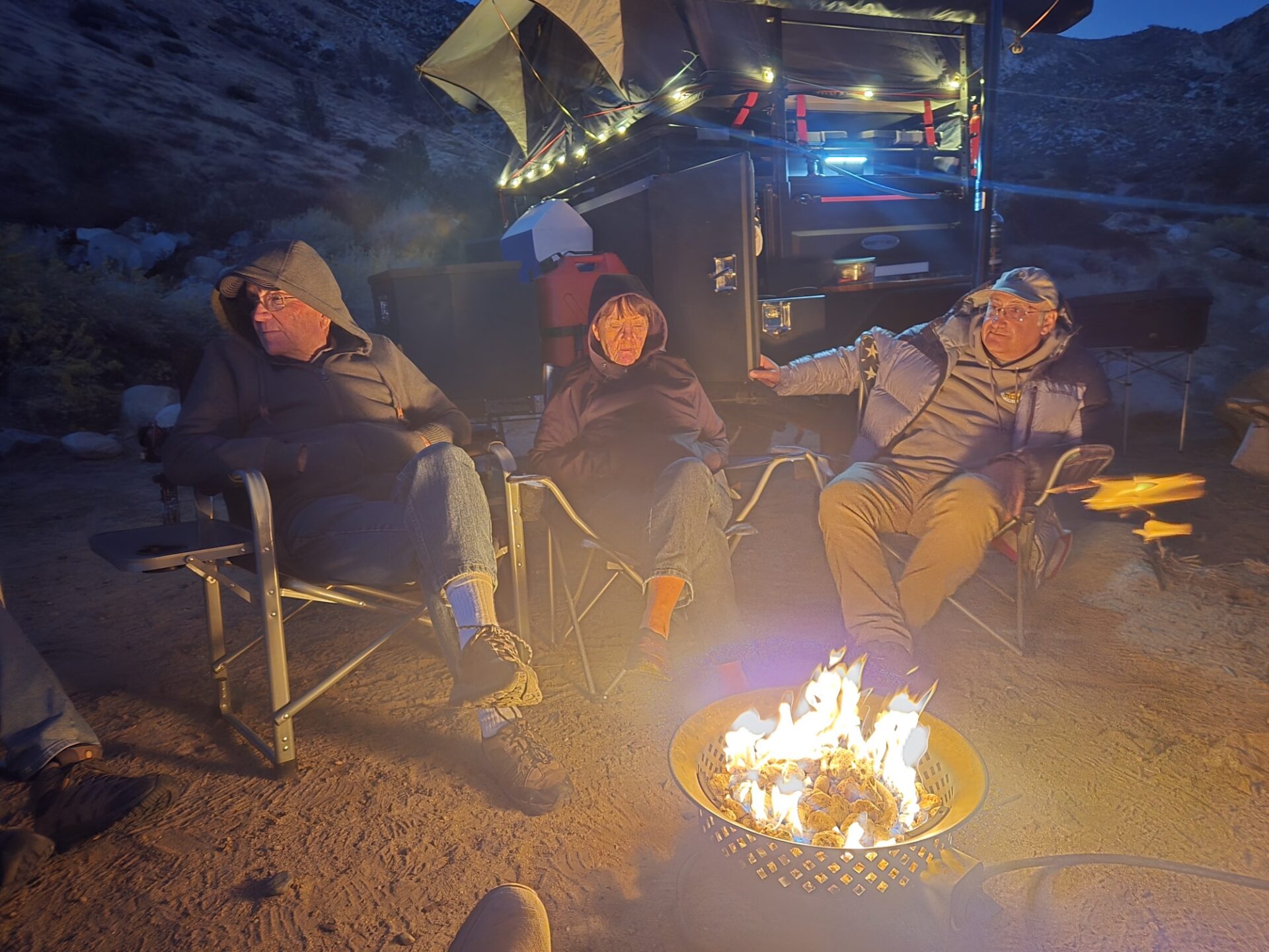 By the time we had set up camp it was about 6pm with the temperature in the 60’s. Later in the evening we gathered round Dave’s gas fire pit to chat (no open fires allowed), and for some well-earned drinks and snacks. Overnight we all commented that it was a lot colder than expected.